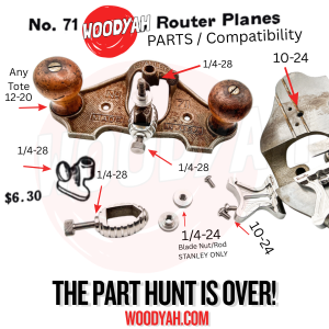 Router plane parts can be confusing across Stanley, Record, Millers Falls, and Sargent. Woodyah parts are designed for maximum compatibility whenever possible, and this section helps you quickly see what fits, what threads match, and where model differences matter.
